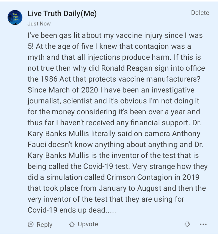 Since March of 2020 I have been an investigative journalist, scientist and it’s obvious I’m not doing it for the money considering it’s been over a year and thus far I haven’t received any financial support.